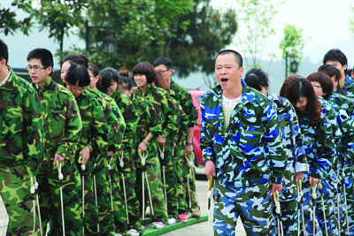 4月15日,在乐清玲珑山庄,“龙之队”、“猛虎队”两组队员在队长的带领下喊出了各自响亮的口号,唱出了气势磅礴的队歌,信心满满地迎接着接下来的挑战。这是市局龙湾区局的员工们正在这里开展素质拓展活动。