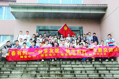 本报讯 5月19日,瑞安局团委与瑞安电力、瑞安中行、瑞安移动团委联合举办了“青春有约——分享友谊、快乐前行”主题交流活动,60余人前往高楼寨寮溪进行了背摔、过电网、真人CS等户外拓展,增进了邮政、电力、中行、移动之间的友谊,更锻炼了青年团员的沟通交流、组织管理、开拓创新的能力。(陈 雅 摄影报道)