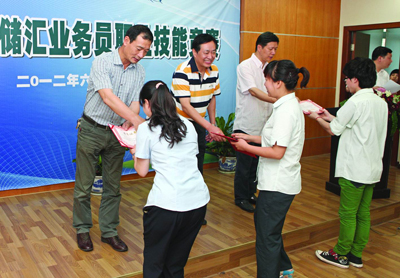 本报讯(朱蓓蓓) 6月12-13日,市局在培训中心举办全市邮政特有职业技能竞赛活动。各县(市)、区局共12支代表队35名邮政储汇业务员,参加理论知识考试、微机录入、办理储蓄业务、办理汇兑业务、手工点钞、加打凭条共六项比赛。