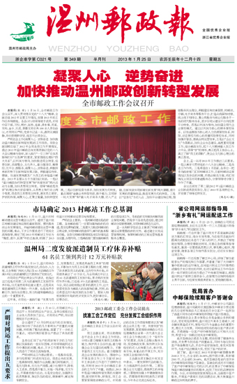 凝聚人心 逆势奋进 加快推动温州邮政创新转型发展