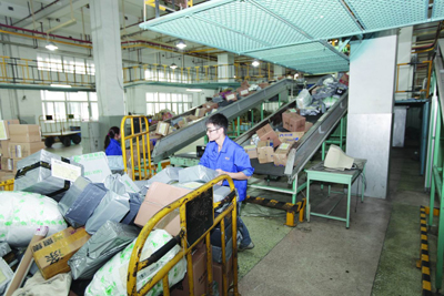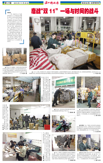 市邮区中心局腾出一楼部分转运场地并提供网络支持作为电商客户的仓储和现场配发点,让大客户避过高峰期,提前把商品运到处理中心,缓解经营单位的场地压力和中心局“双11”期间的运输、装卸压力。□ 叶会洲 摄