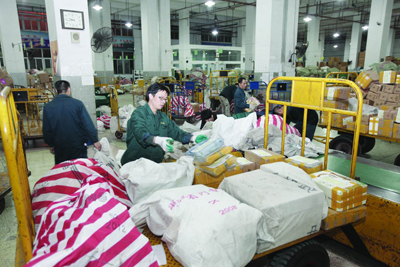 瓯海区局塘下窗口在“双11”小包收寄非常忙碌的收寄人员同时要收、录、搬小包,一天的收寄工作通常要到晚上9点才能结束。等工作人员把当日收寄成功的几千多件小包搬到邮车上,一天的揽收收寄工作才算落下帷幕。□ 董 微 摄