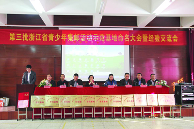 本报讯 11月22日,浙江省第三批青少年集邮活动示范基地命名大会在永嘉县瓯北第二小学召开,对永嘉县瓯北第二小学等全省第三批青少年集邮活动示范基地的11个单位进行命名。全省40多所学校代表参观了永嘉县少年邮局、集邮活动基地并作经验交流。(胡 文 摄影报道)