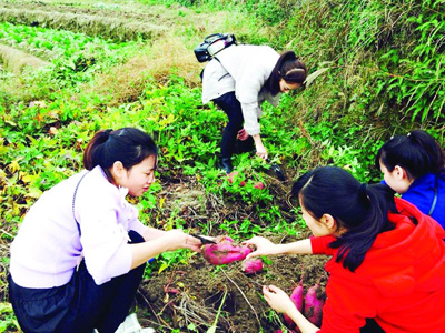 在位于郭溪镇的曹平山村,青年团员们拿着铁锹和铲子到田里挖红薯,着实体验了农作生活。劳作后,大家来到曹平山庄大院自助烧烤,一边品尝、一边闲聊,忘却了繁世的喧嚣与尘埃,放松心情,感悟生活的快乐和幸福。 (吴 颖 摄影报道)