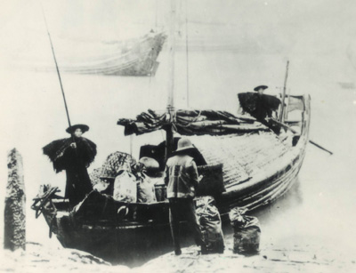 图为解放前邮差在温州朔门大马道交接邮件