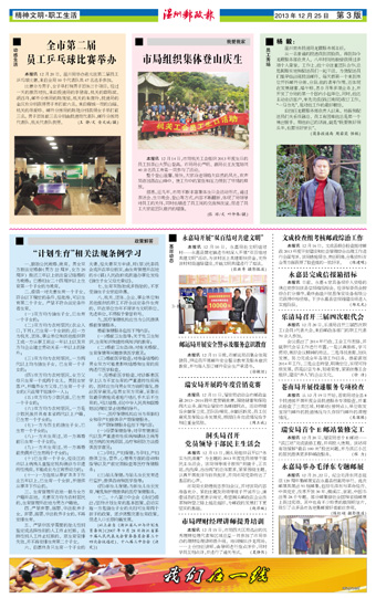 本报讯 12月14日,市局机关工会组织2013年度生日的员工到茶山大罗山登高,市局局长严明、副局长王友宽陪同40余名员工寿星一同参与了活动。