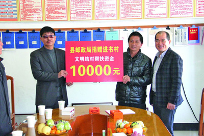 本报讯 12月10日,永嘉局赴文明结对村——永嘉县巽宅镇进书村深入开展“双百结对共建文明”活动,为该村送上共建帮扶资金,支持该村村级道路建设,并就文明共建进行了座谈。(张新秀 摄影报道)