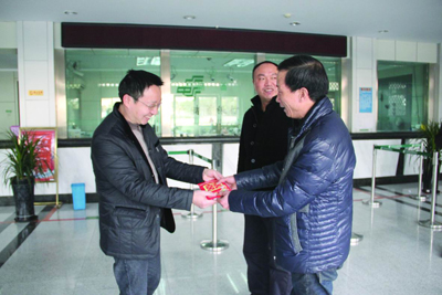 本报讯 2月8日,带着新春的浓浓祝福,瑞安局领导班子带领综合办、市场部等部门人员,分三组到基层慰问和看望了坚守在生产一线的干部职工。局领导和干部职工一一握手,向他们送上了新春祝福,对大家一年来付出的辛勤工作表示衷心的感谢。(陈 雅 摄影报道)
