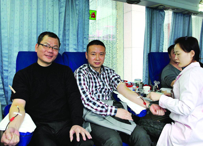 本报讯 2月26日上午8点,温州市血液中心的献血车缓缓开到温州市邮政局行政楼前,早已等候在大厅的温州局职工纷纷挽起袖子,排起长队,走上献血车。活动共有来自各单位90多人参加体检。据统计,共56人献血,献血总量16500CC。(王 静/文 金文斌/摄)