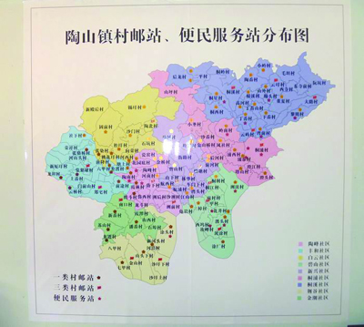 本报讯 近日,瑞安陶山支局组织员工对陶山镇九个社区及所属村邮站、便民服务站分布信息进行了采集并制作完成了新版陶山镇村邮站、便民服务站分布图。