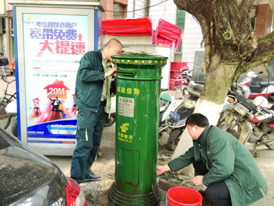 本报讯 近日,瑞安局发投分局的党员、团员和邮递员骨干组成信箱保洁队,对教师进修学校、科技大楼等地的信箱进行擦洗;电瓶车维队对分局职工的30辆左右的电瓶车进行了维护。