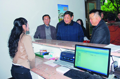 徐建华(左三)一行在苍南柳南联合村邮站调研。