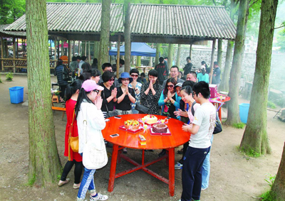 午餐后,员工们一同在风景区内游览,尽情领略了大自然的美丽风景,一扫工作的压力与疲惫。(王晓锋/摄)