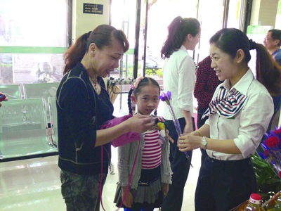 5月12日“母亲节”,平阳局代理金融网点开展“浓情五月天 鲜花赠母亲”特色活动,为当天前来代理网点办理业务的女性客户赠上一朵自制的康乃馨,并对客户表示感恩之心,祝愿她们健康快乐。收到鲜花与祝福的女性客户们对邮政的温馨服务感动不已。(彭海英 摄影报道)
