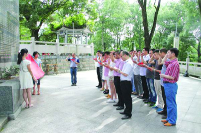 本报讯 6月28日,永嘉局组织各支部委员、党员骨干和新党员前往永嘉县革命烈士纪念馆开展“重温入党誓词 永葆先进性”实践活动。在烈士纪念碑前,党员们缅怀先辈事迹,回顾革命历史;面对鲜红的党旗,新党员进行了宣誓,老党员重温了入党誓词,再一次感受深刻的思想洗礼。(王 静 摄影报道)