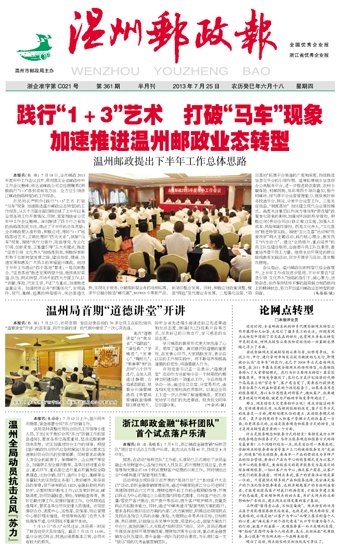 践行“1+3”艺术 打破“马车”现象加速推进温州邮政业态转型