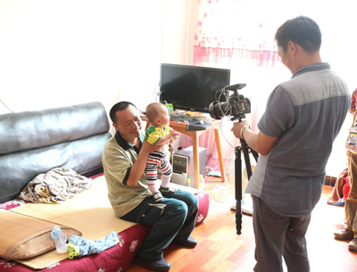 10、在儿子家中,接受央视记者的采访。抱着孙子的兰速文显得很腼腆。他说,“有时候邮件很多,很想孙子,但只能抱抱就赶紧又去投递了。”