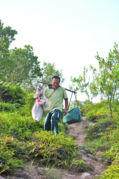 2、走了一段长长的山路,兰速文终于来到山顶,满头大汗的他终于可以放下担子歇一歇。山顶的大伯也姓兰,看到兰速文真的给他带来一只小猪,高兴地合不拢嘴“只是随便一说,你咋真的给带来一只小猪啊!”。兰大伯说,自己是看着兰速文长大的,像他这么好的人,真是太少了。