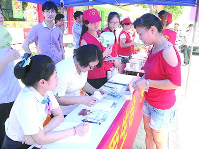 本报讯 7月25日,永嘉乌牛储蓄网点联合埭头社区、乌牛卫生院、社保等多家单位在乌牛皮服城开展“夏日送关怀”党员志愿活动。志愿者们向周边居民免费提供茶水、西瓜、防暑药品及量血压服务。乌牛网点还向居民们赠送了夏令用品并积极宣传“来邮政,万元存款有礼”活动,受到群众欢迎。(陈聪聪)