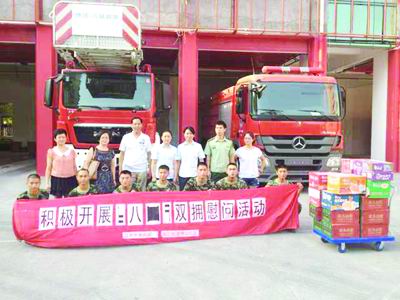 本报讯 7月30日,汤家桥支行联合绣山社区到新城消防大队开展夏日送清凉慰军活动。向消防战士们送上夏日避暑用品,同时,网点工作人员积极热情地向他们宣传金融理财知识。本次活动既为网点今后的业务发展拓展了客户资源,也宣传了邮政“拥军爱民”的品牌形象。(李 芳)