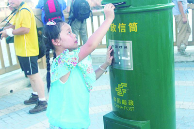 幸福慢递,写给未来的自己,写下的是孩子们最开始的纯真,是少年们最初的梦想,是父母们最真诚的期盼,是伴侣间最珍贵的回忆。游客们对“写给七年后的信”活动产生了极大的兴趣,纷纷投入到写信活动中来。“宝贝,此刻的心情怎样?”“开心!”“那现在最想做的一件事是什么呢?”“我要喝饮料。”“最想要的礼物是什么呢?”“钻石!”“最想对爸爸妈妈说什么?”“我爱你们。”一问一答式的写信格式,吸引了众多的小游客,这些就是孩子们脱口而出的答案。