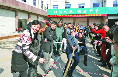 本报讯 2013年12月29日,瑞安局工会举办“庆元旦”员工第三届趣味运动会。跳绳、仰卧起坐、呼啦圈接力、拔河比赛四个项目吸引了十支队伍、共计80多人参加。(周立斌 摄影报道)