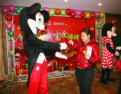 该局别出心裁安排两位理财经理穿着米奇、米妮的卡通服饰,负责迎宾、礼品兑现,受到客户喜爱,客户纷纷上前与其合影。联谊会精心准备的中邮保险宣传片及一堂实用的养生课同时也受到了客户的热烈反响,他们纷纷主动咨询医师健康问题,填写个人体质测试表。联谊会上穿插的抽奖环节、由理财经理带来的集体舞,神秘的“寻宝游戏”让活动现场热闹非凡。乐清局亲和、专业的服务精神与态度,受到了到场嘉宾的高度肯定和赞许。(吴丽敏 摄影报道)