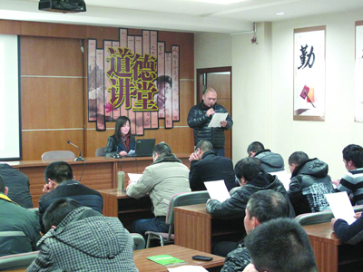 本次讲堂分做反省、唱歌曲、诵经典、学模范、发善心、做善事、鞠躬礼、送吉祥八个环节进行。该局同时创新活动形式,发动每个班组分别参与道德讲堂的其中一个环节,使之成为大家交流学习的平台。驾驶班叶佶领唱《学习雷锋好榜样》,大家重温雷锋精神,倡导多做好事,热爱工作,做好邮运优质服务;押运班林竟领读国学经典《弟子规》,使大家感受到了中国传统文化的博大精深;独臂鸿雁郑小平的先进事迹及该局汽车修理班技术生产骨干、优秀派遣制员工余克彪生动朴实的故事深深感染了大家,他们的敬业精神和对企业的忠诚,是大家学习的榜样。(徐敏丽 摄影报道)