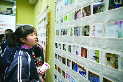 在店内,一群女学生好奇地转动着该邮局的一片“时光墙”,这片墙由许多格子组成,可自由推动,每个格子都标志着不同的日期。据介绍,不同日期寄出的信件或明信片,将会被放到不同的格子中,工作人员会在格子书写的日期来临当天,将之寄出。还有几名小男生,各拿着一张明信片,填写着只有他们铁哥们间能理解的语言符号。他们要将明信片交换着寄给未来的他们,约定在3年后一起来读。