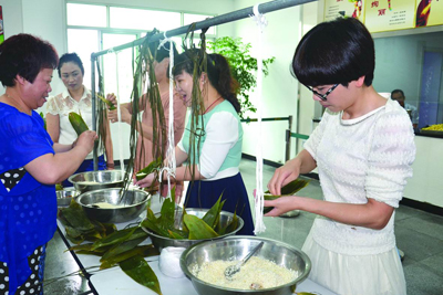 本报讯 5月29日,苍南局在职工食堂开展员工端午包粽子大比拼活动。随着裁判的一声“开始”,一字排开的五位选手,有条不紊地理粽叶、填米、填馅料、捆扎。
