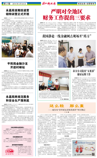 本报讯(陈纯白 周 伟) 6月11、13日,市分公司副总经理黄国静一行赴永嘉局东蒙、岩头网点,文成局玉壶、南田、城南网点调研。